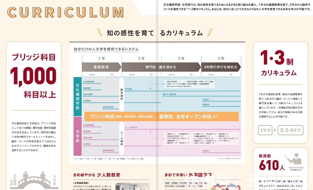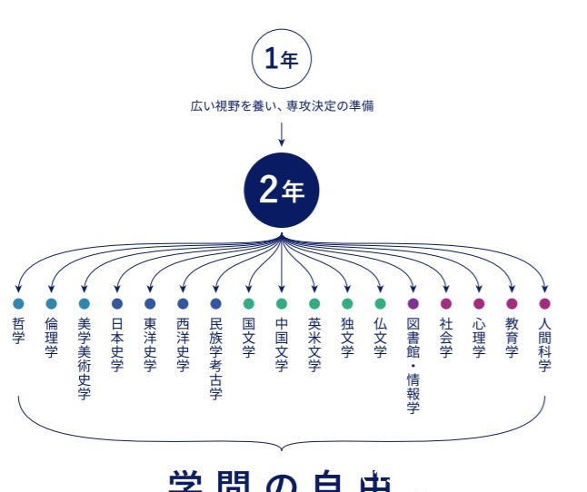 与早庆不同,上智文学部的学生在一年级就要展开专业知识的学习,虽不至于出现早庆文那样“无法如愿进入志望专攻”的情况,但在出愿时慎重选择的重要性不言而喻。