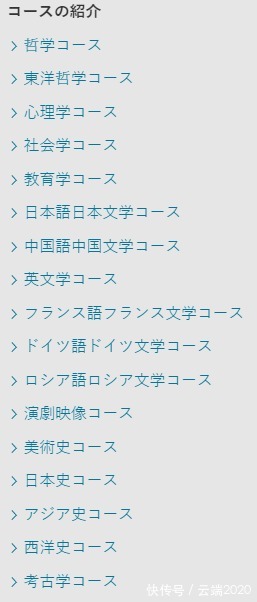 如早大文学部下设有演剧映像、中东伊斯兰研究、东洋哲学、俄语俄国文学course;