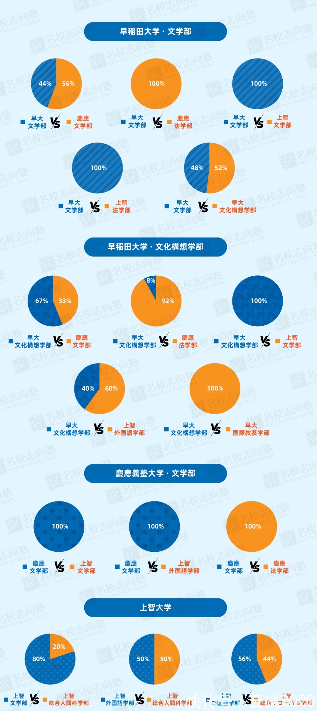 而从数据中可观察到的文学部学生的热门并愿选项,非庆应法学部莫属。在同时合格庆应文、早大文、庆应法的情况下,几乎所有考生都会选择庆应法。